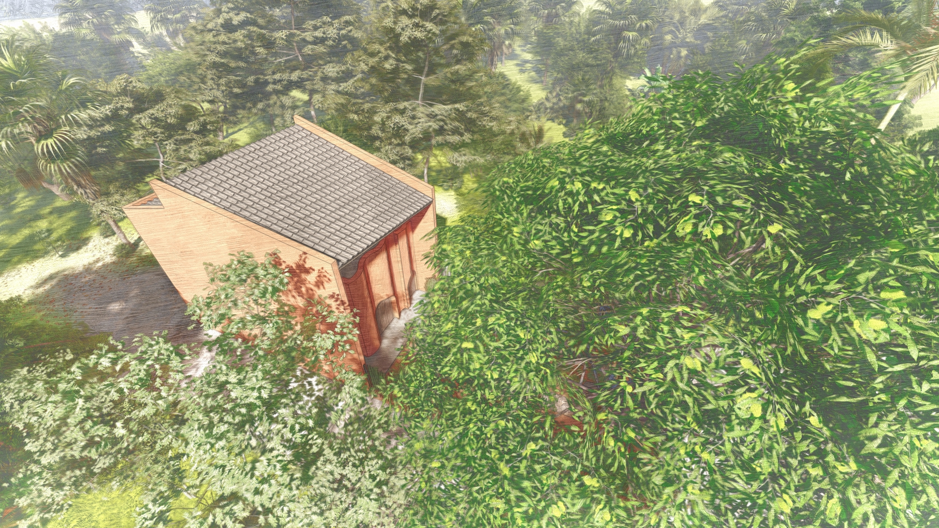 Chất liệu sắt tái chế được sử dụng triệt để trong kết cấu mái và hệ tường rào bao quanh khuôn viên công trình. Tính bền vững được đảm bảo từ việc chọn vật liệu đến cách thức thi công, hạn chế tối đa tài nguyên hao phí và chất thải ra mồi trường.