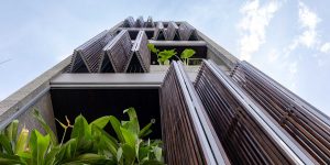 designboom / folding teak shutters weave light and nature into pham trung’s narrow home in vietnam